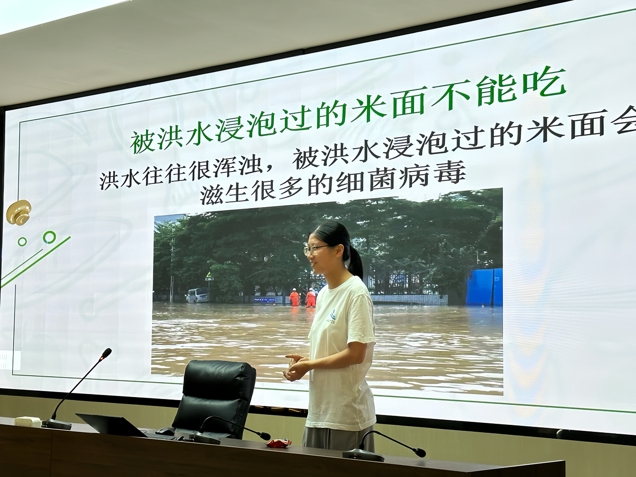 系统性环境治理让生态守护更见实效。调研期间正值台风季,实践团发挥专业所长,化身“食安卫士”为20余名老人展开台风天粮食安全科普。令科普队员意外的是,村民对相关知识早已了然于心。台风过境,村内水渠河道依然水位稳定。这背后,是近十年“点-线-面”持续发力:从组织河道“白色垃圾”清理志愿队,到收回污染养殖塘,再到岸线砌坎与绿化,实践队员分析发现,这种治理模式本质上是乡村环境“微循环系统”的重塑,不仅保障了生态安全,更提升了村民的环境意识与生活品质,实现了生态与民生的深度共赢。