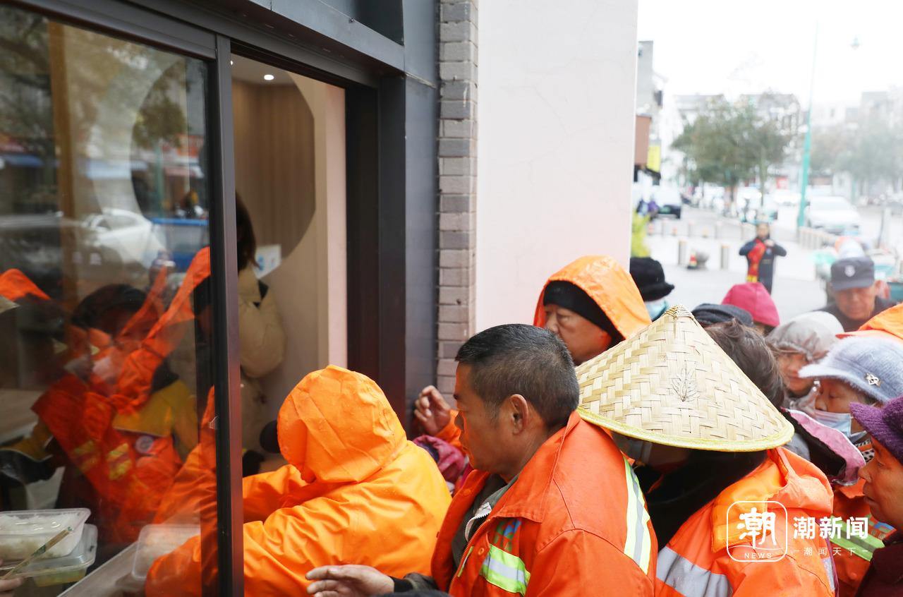 55岁的环卫工赵大姐和工友们是这里的常客。驿站的窗口内,穿着志愿者红马甲的孩子们踮着脚尖,双手捧着餐盒,礼貌地递到等候的工人手中,一声声稚嫩清脆的“叔叔阿姨,您辛苦了,快趁热吃”,让寒冷的雨天多了几分熨帖人心的暖意。