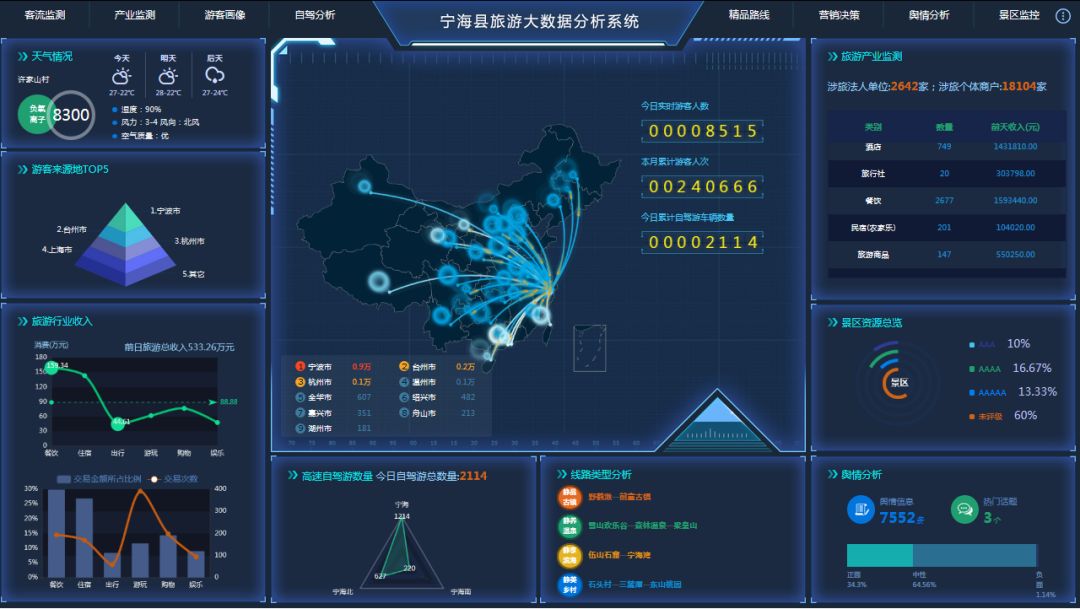 创新推广旅游智慧化应用,旅游大数据中心提供导游导览、客流监测、景区监控、营销决策等20余项功能,创新推出全国首台人机交互旅游机器人,广泛运用VR旅游、手机APP,让游客一个手机玩转宁海。