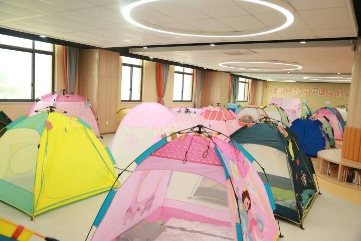 杭州市钱塘区幸福河小学的躺睡,又有了新招数。为了让孩子们睡得更好更舒适,学校在垫子躺睡的基础上,小范围试点帐篷躺睡。学校的“躺睡工程”也因此入选《2021中国基础教育年度报告》20个学校典型案例。