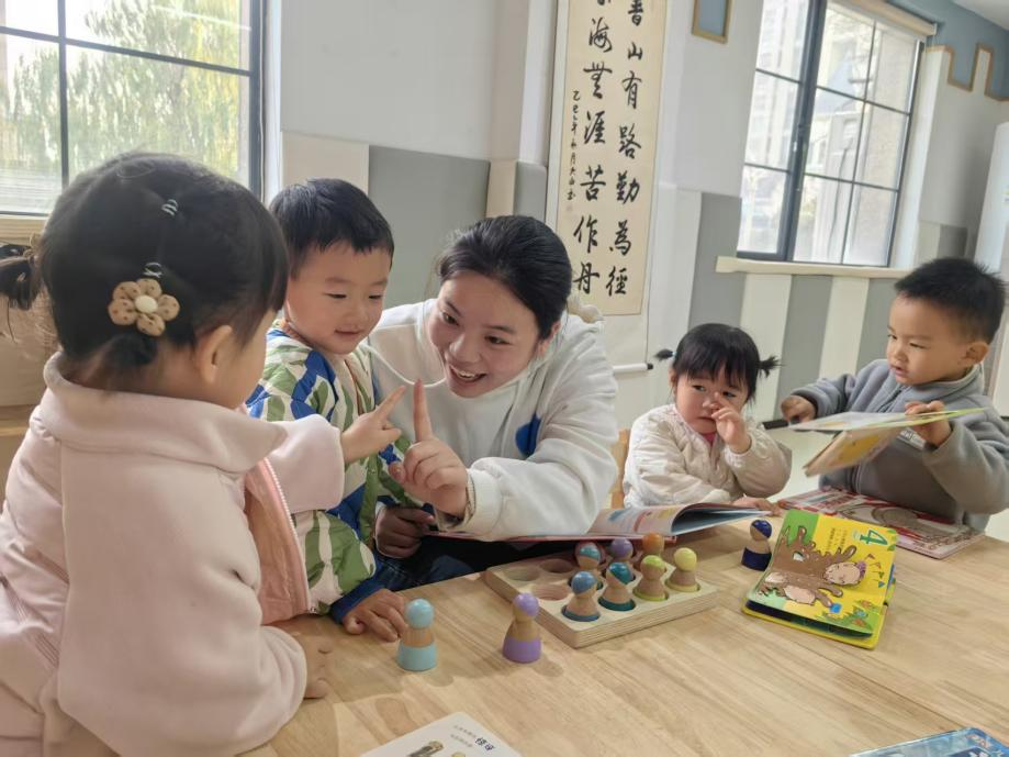 专业的早教老师和照护人员会根据不同年龄段宝宝的成长需求,设计丰富多样的趣味活动。跟着老师唱儿歌、做律动,在亲子游戏中拉近和爸爸妈妈的距离,在感官训练里探索奇妙世界……开园首日,萌娃们就玩得不亦乐乎,一张张红扑扑的小脸上满是笑容。