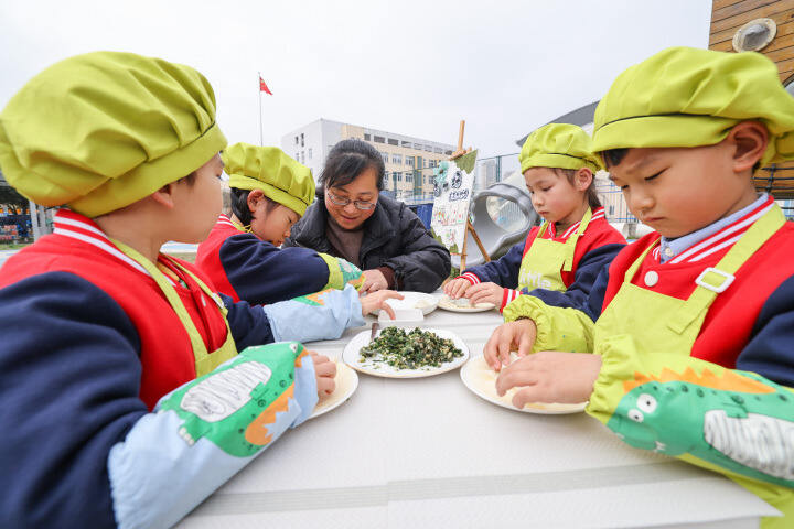 3月20日,长兴县林城镇天平村,孩子们正在体验农事。当天,林城镇中心幼儿园开展“春分趣探农耕”主题活动,组织孩子们走进田间地头,通过农业科普、农事体验等活动,普及春分节气知识,帮助学生树立节粮爱粮意识。
