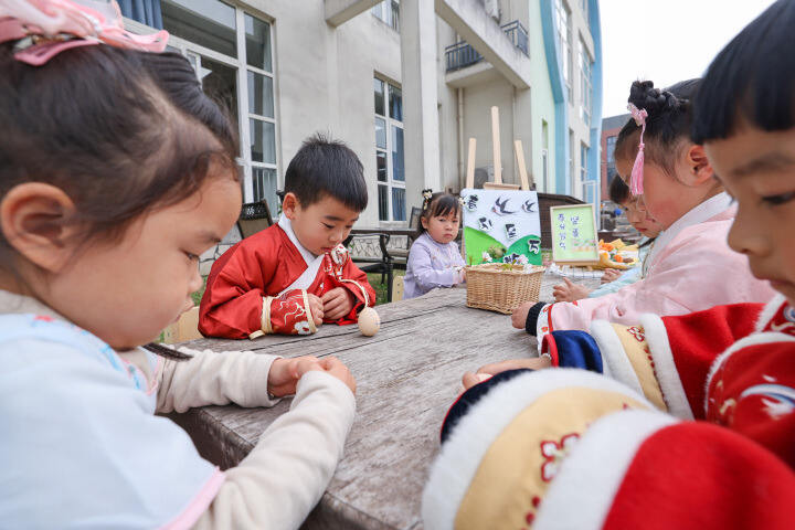 3月20日,湖州市德清县康乾街道浙江工业大学附属秋山幼儿园开展春分节气主题活动。孩子们在老师的带领下开展竖鸡蛋、种蔬菜、包春卷,放风筝等活动,让孩子们体验传统民俗,了解春分节气。